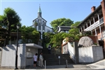 ◆【大浦天主堂】(外觀拍照)位在哥拉巴公園階梯口,是日本最為古老的木造哥德式教會建築,被日本指定為日本國寶;教堂內有百年歷史的法國製的彩色玻璃,為教堂增添不少夢幻氣氛。